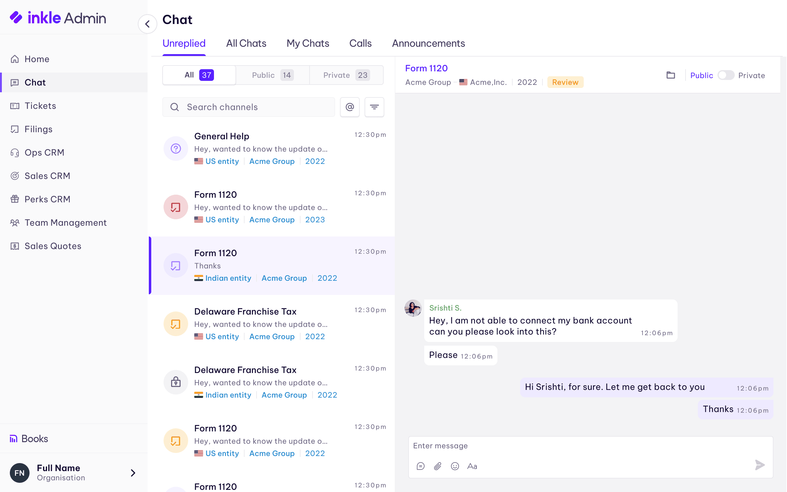 But the experience didn't reflect that weight. Users didn't know which channel to use. Ops teams missed critical messages. Context was buried. Escalations to leadership had no clear path. And behind the scenes, a customer team was manually messaging hundreds of companies one by one during peak filing season.