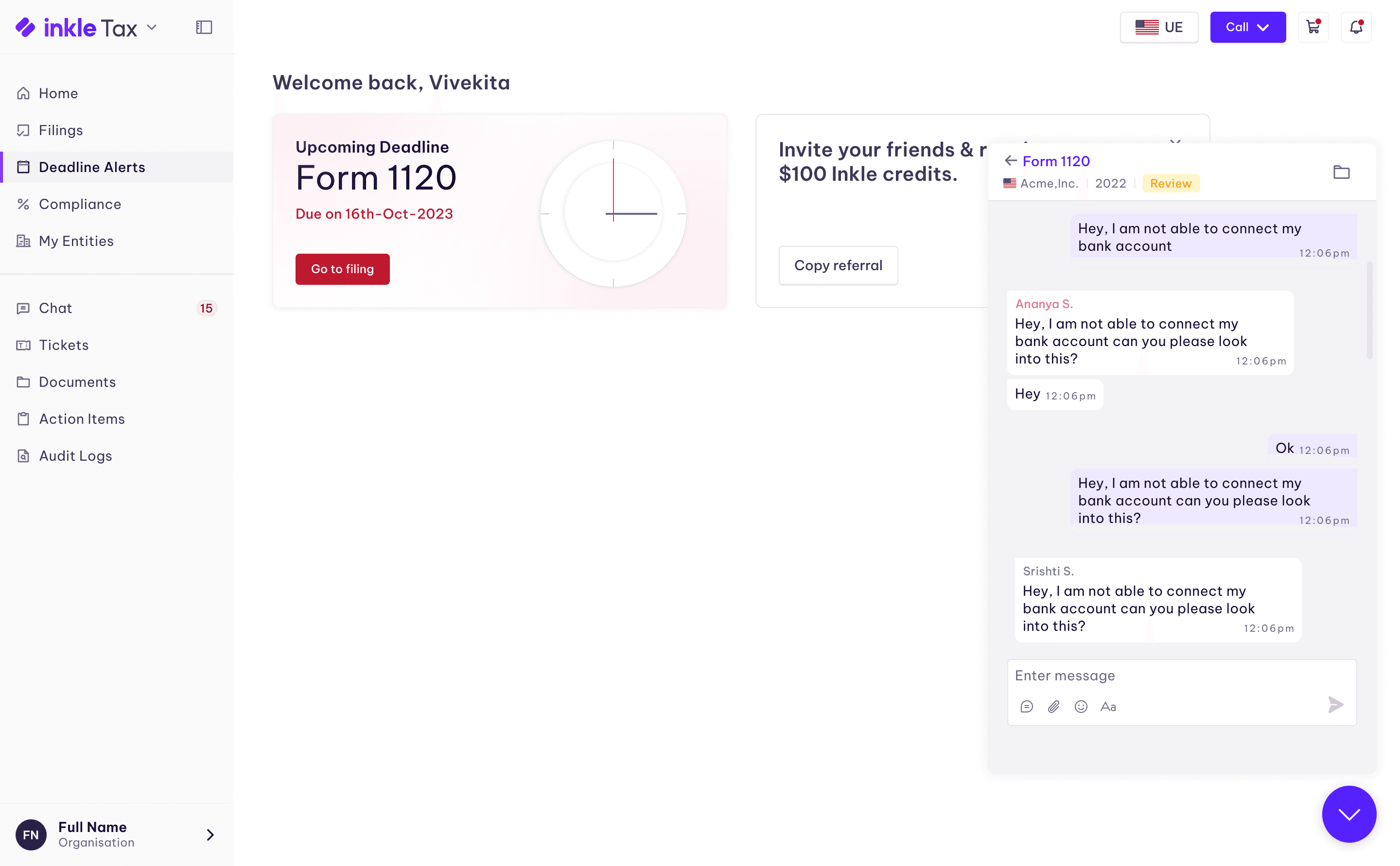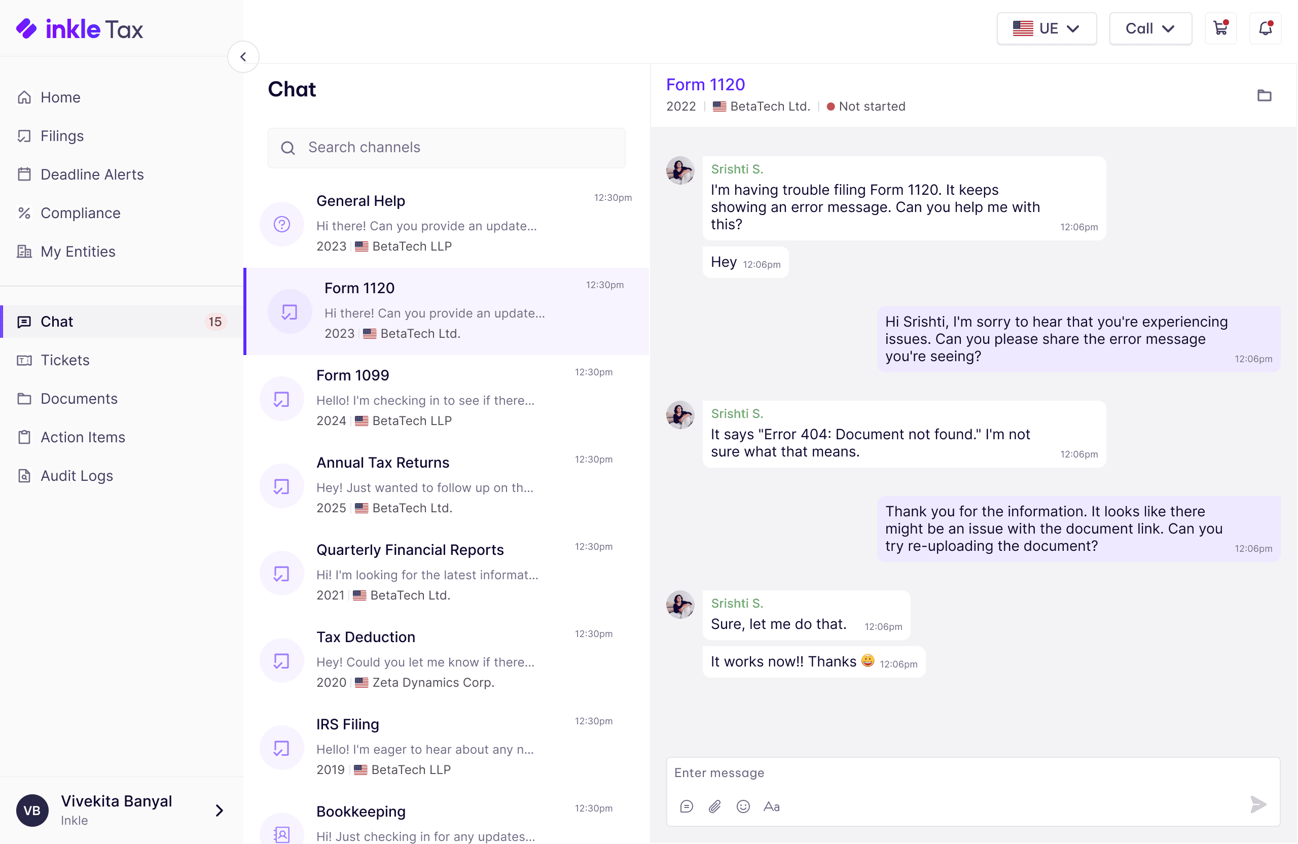 Chat was the constant. A direct line to the people who understood their business — accountants, compliance experts, and the Inkle team. Not a helpdesk. Not a ticketing system. A relationship.